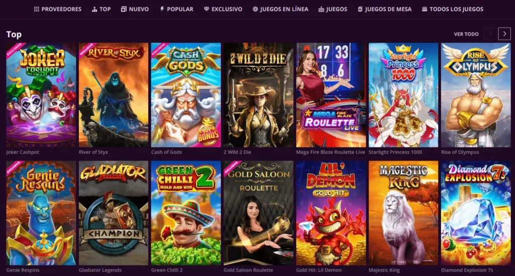 Los jugadores pueden disfrutar de una amplia selección de los juegos más populares directamente desde el navegador de su dispositivo. La interfaz es intuitiva y fácil de usar, permitiendo una navegación fluida y un acceso rápido a los juegos y opciones bancarias.